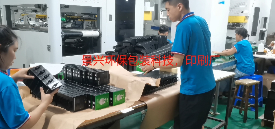 上圖是傳音耳機(jī)盒包裝,正在產(chǎn)線上生產(chǎn)加工,這個(gè)盒型設(shè)計(jì)稍微高檔一點(diǎn),實(shí)話實(shí)說(shuō)盒型采用了天地蓋與掛鉤搭配,整體視覺(jué)上給消費(fèi)者一種高檔耳機(jī)的心理暗示。